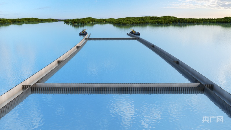 平天湖隧道钢板桩合围效果图(央广网发 安徽建工路桥供图)