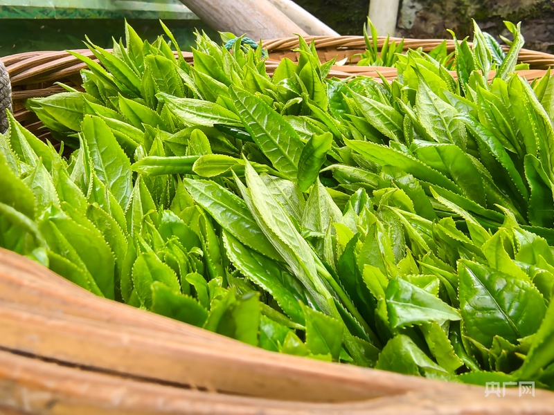 4月16日当天茶农采摘的太平猴魁鲜叶(央广网记者 刘浩 摄)