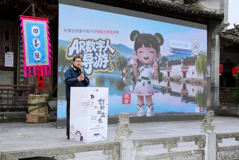 AR数字人导游“徽音”,通过增强现实技术,用生动、可爱、可交互的方式,提供讲解服务与情感陪伴,既解决了旺季导游供不应求的痛点,也解决了普惠性与高品质服务之间的矛盾。“宏村宝藏”超沉浸剧场和西递首个实景沉浸式剧场,一秒即刻穿越到古徽州,让历史文化和生活故事变得可感知、可触摸。