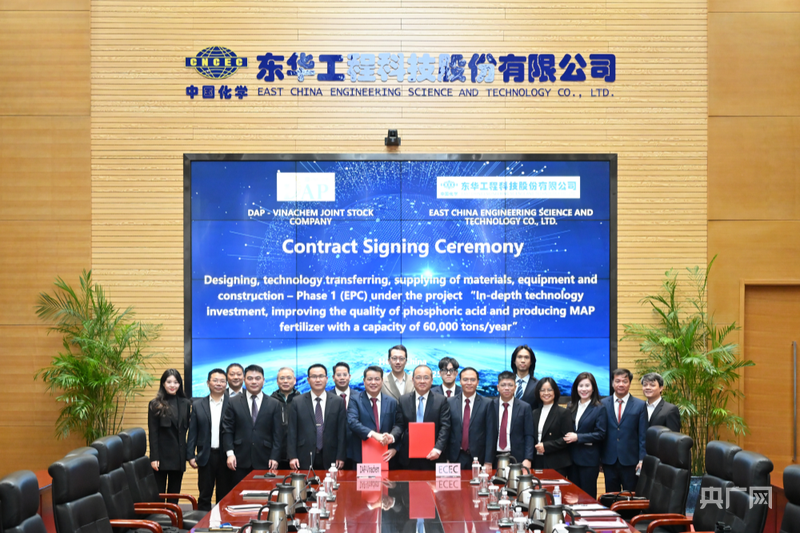 央广网合肥11月27日消息(记者徐秋韵 通讯员程燕)11月25日,中国化学工程东华公司与越南化学DAP股份公司(DAP-Vinachem)正式签署磷酸提质及年产6万吨MAP化肥项目EPC合同,标志着公司在践行“T+EPC”模式、强化技术引领带动工程总承包方面再获重要突破。