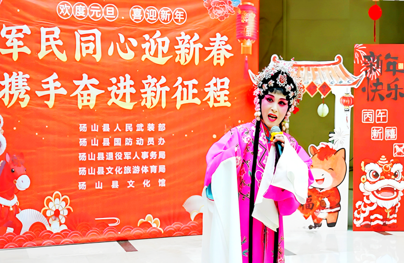 央广网砀山1月9日消息(记者鲍玉婵通讯员李艳龙)“正月里开迎春,花少叶盛……”近日,在砀山县文化馆举办的军民联欢会上,一段《报花名》唱得满堂生辉。台前,省级非遗传承人宋雪梅一开嗓,四平八稳的韵律里透着甜脆,仿佛带着砀山酥梨的清气;台后,从青葱岁月到两鬓微霜,她已为“砀山四平调”这门地方戏,默默守候了四十多个春秋。