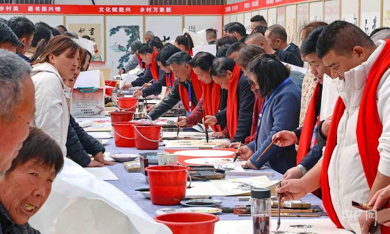 央广网宿州4月1日消息(记者 刘浩 通讯员 董晴)春风拂故道,桃花映墨香。近日,作为“中国书画艺术之乡”萧县的特色文化盛事,刘套镇第34届桃花笔会圆满落幕。活动为期3天,以桃园写生为基础,同步开展书画交流与现场笔会,苏鲁豫皖百余位书画名家、乡土艺人与爱好者齐聚黄河故道千亩桃园与镇政府广场,桃园写生取景、广场挥毫创作、现场切磋交流,以花为媒、以笔会友,将萧县千年书画文脉与乡村振兴图景融于笔墨,让“龙城画派”的薪火在春日里焕发新活力。