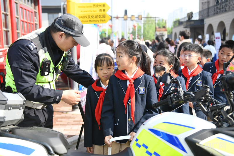 活动期间,行知小学师生代表还走进合肥市国家安全教育基地暨瑶海区国家安全教育展馆,在兼具历史底蕴与时代内涵的老工业厂房里,感悟国家安全的重要意义。展馆外,区消防救援局消防员、交警瑶海大队民警为孩子们带来了趣味满满的消防和交通安全科普小课堂,通过展板展示、通俗化讲解、互动提问、情景小游戏等形式,引导孩子们从小树立消防安全、交通安全意识,将安全理念内化于心、外化于行。