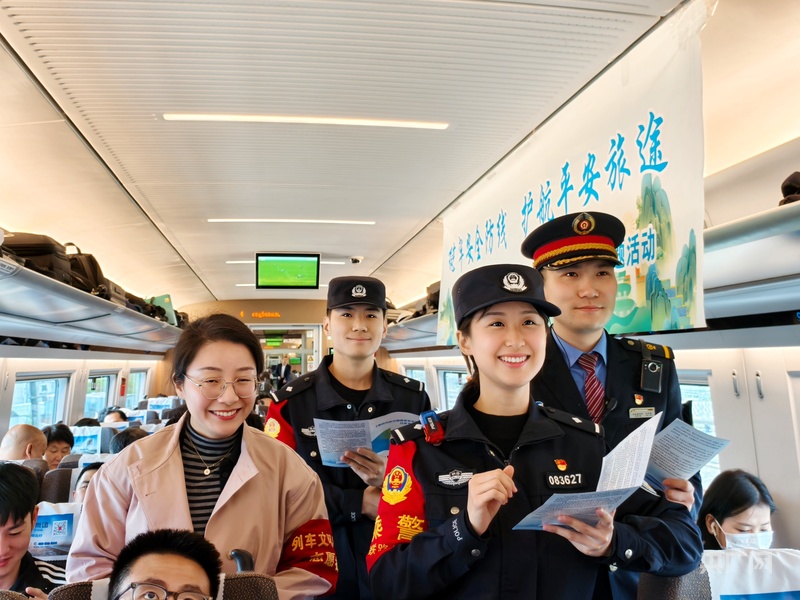 为加深旅客对知识的理解记忆,现场还开展了国家安全知识有奖问答互动,旅客们踊跃参与、积极抢答,氛围热烈。与此同时,乘务人员会同乘警一起在车厢内有序发放国家安全宣传册,全方位、多角度开展宣传,进一步提升旅客国家安全防范意识。