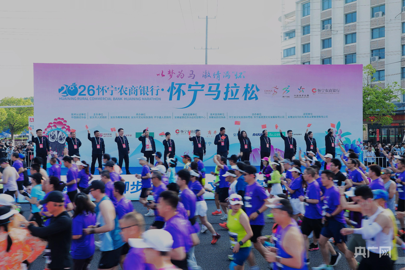 央广网安庆4月20日消息(记者赵家慧 实习记者关家燊)4月19日7时30分,2026怀宁农商银行·怀宁马拉松在怀宁县市民广场激情开跑,全国各地跑友齐聚独秀大地,以奔跑之姿赴一场春日“蓝莓之约”。