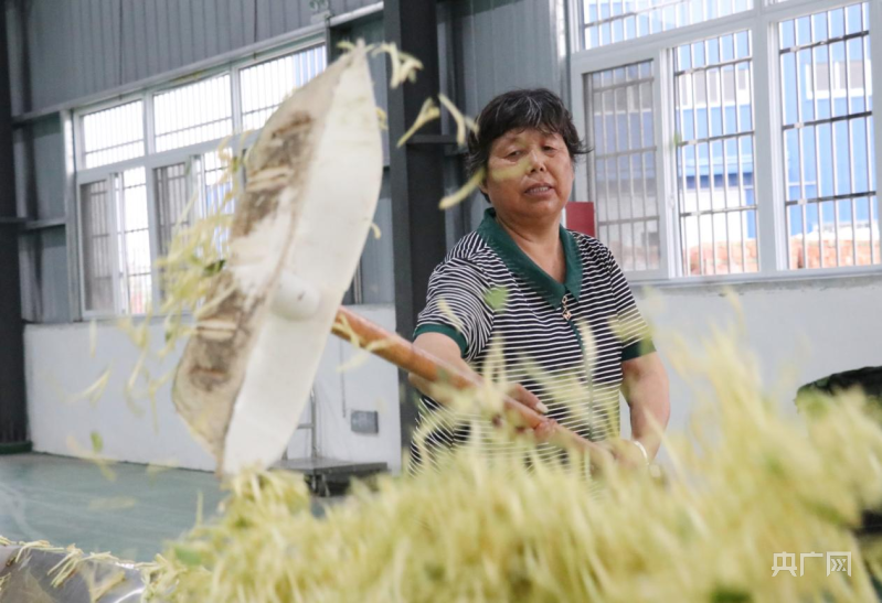 当地农户将采摘的金银花烘干收储(央广网记者 徐鹏 摄)