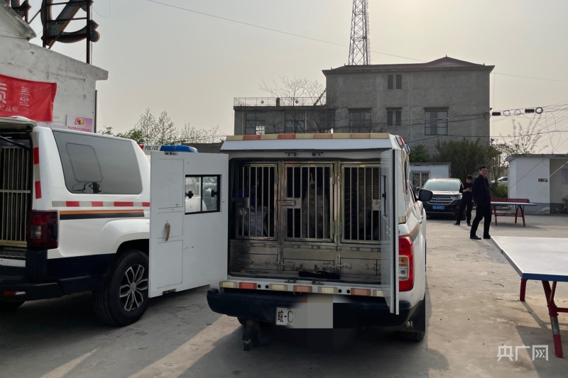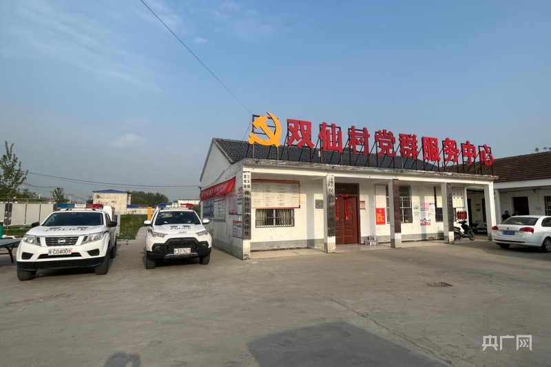 4月12日下午,双仙村党群服务中心门口停着数辆警车(央广网记者 徐鹏 摄)