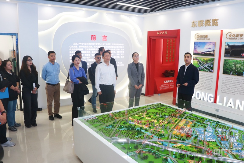 在东联镇党建AR展厅,媒体团通过数字化技术沉浸式体验东联镇“党建引领高质量发展”的实践成果。展厅以“工业园区新邻里,城乡共融新标杆”为主题,系统呈现东联镇的区位优势、历史文化与发展成就,党建数字化、智能化建设及科技赋能基层治理的创新模式,获媒体团成员点赞。