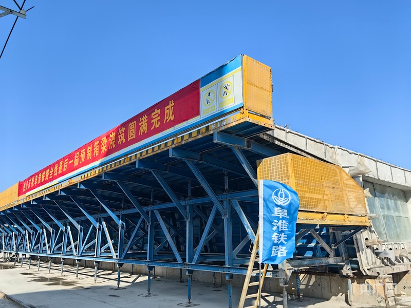 作为现阶段安徽省唯一自主建设的高速铁路,阜淮铁路正线全长约143公里,设计时速350公里。安徽省铁路集团下属阜淮铁路公司工程管理部负责人钟宝介绍,目前阜淮铁路项目正抢抓施工黄金期,大干四季度,项目箱梁架设已完成96%,全线架梁预计于2026年1月完成,2026年4月完成全线铺轨,2026年6月站房工程完工,2026年8月开始联调联试,计划2026年全线建成通车。