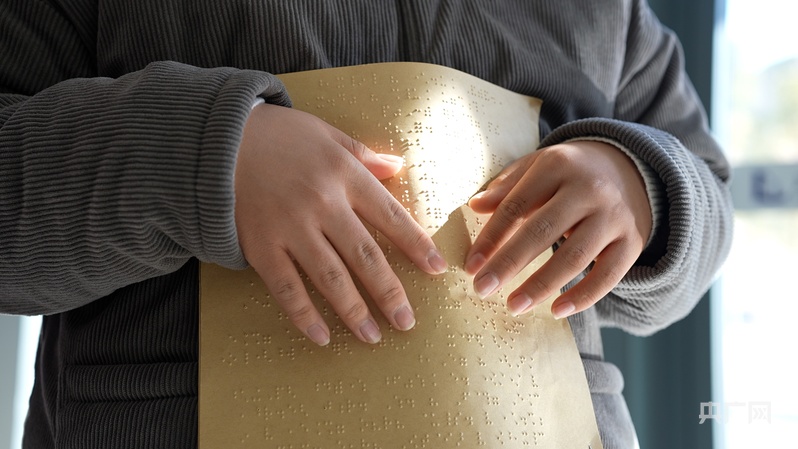 夏孝严手指轻抚盲文(央广网记者 刘畅司晨 摄)