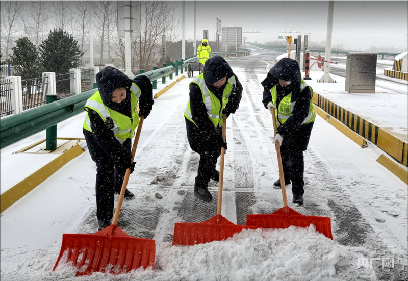 1月19日,徐明中心渔沟站工作人员车道除雪,保障车辆安全通行(央广网发 皖通公司供图)