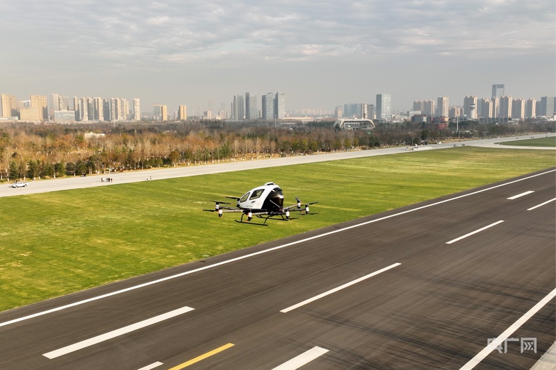 EH216-S无人驾驶载人航空器在骆岗公园试飞 (央广网发 王浩 摄)