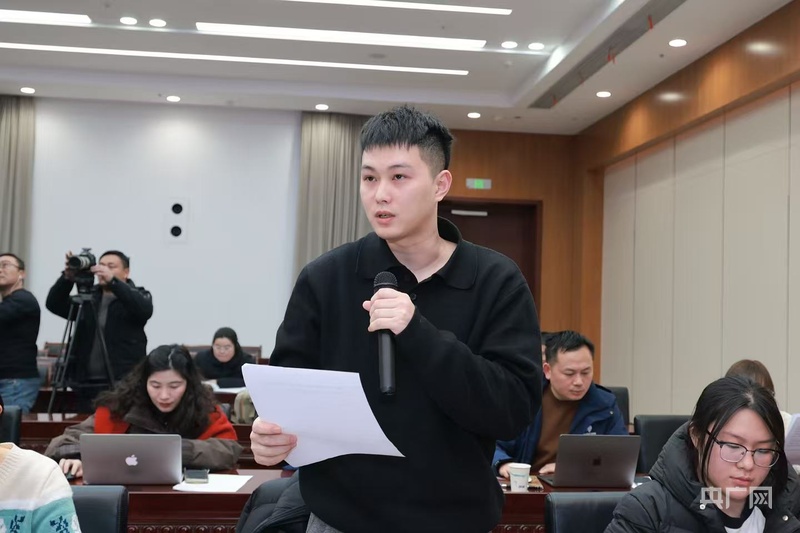 央广网记者在发布会上提问(央广网发 图片来源安徽省政府新闻办)