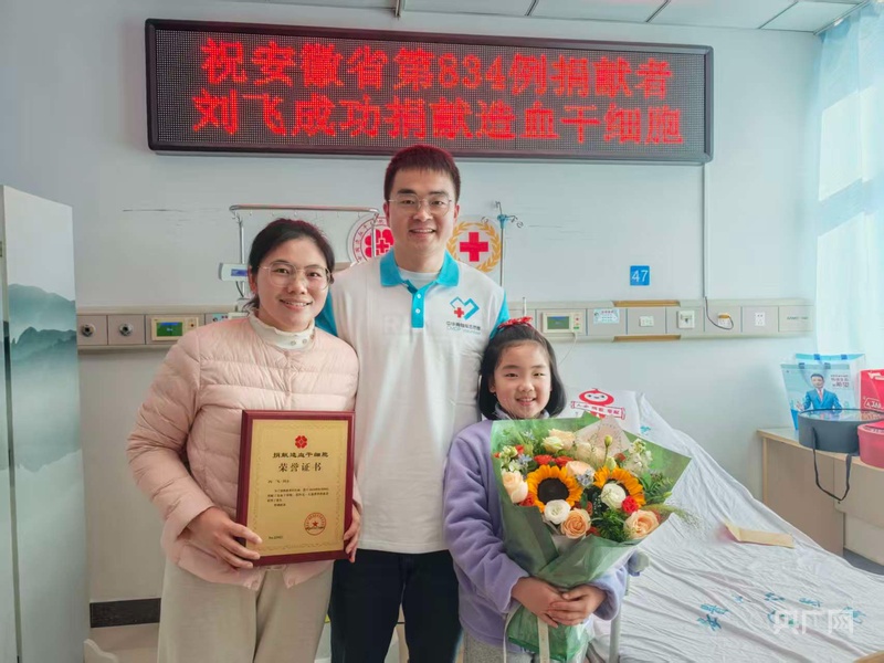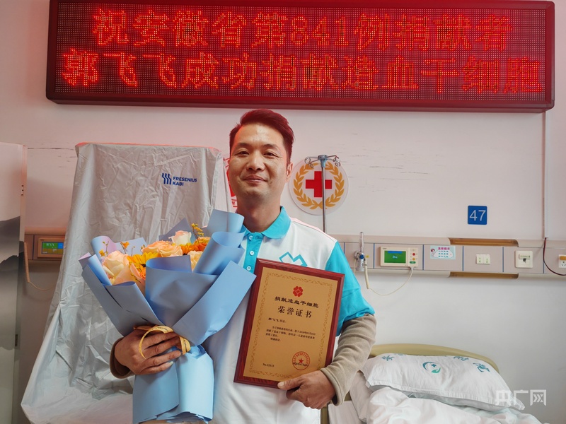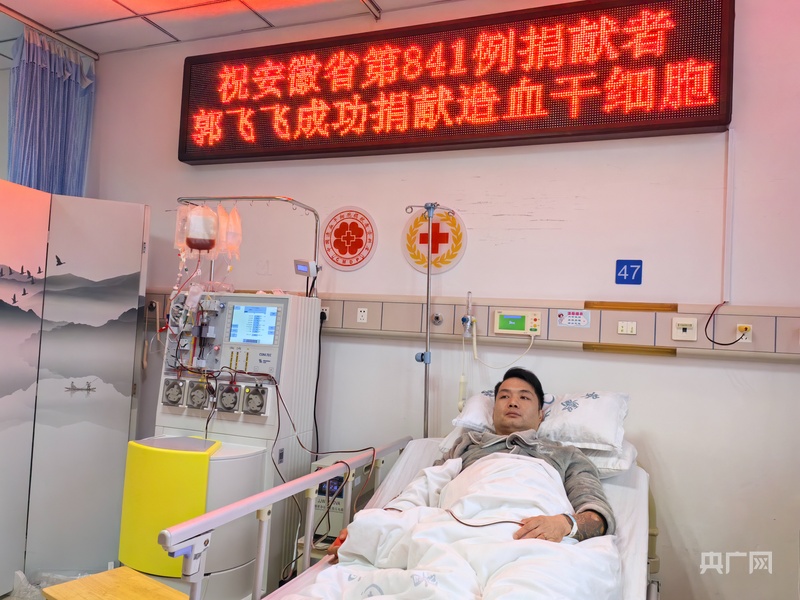 当天中午,采集完成,郭飞飞成为安徽省第841例造血干细胞捐献者。失眠几天的他终于放心了,“回家后,我一定要睡个一天一夜,把觉补回来。”