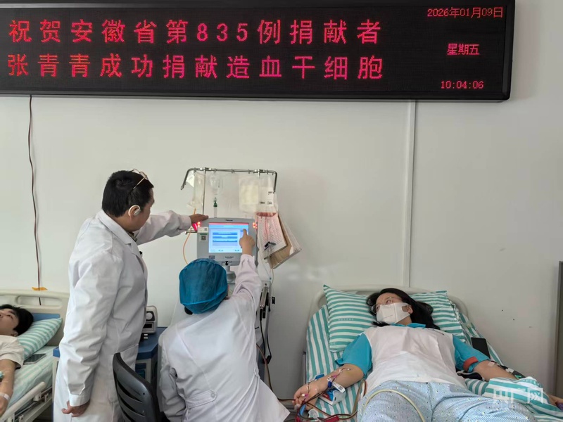 央广网合肥1月26日消息(记者 张琳琳)2026年1月26日,在安徽医科大学第二附属医院,来自阜阳市颍泉区的郭飞飞,顺利完成造血干细胞捐献,成为本月阜阳第三位造血干细胞捐献者。此前,1月8日、9日,阜阳发改委工作人员刘飞、“00后”女教师张青青均完成造血干细胞捐献。不到二十天,三名来自阜阳不同行业的普通人先后挺身而出,用“生命火种”为素未谋面的血液病患者送去生的希望。