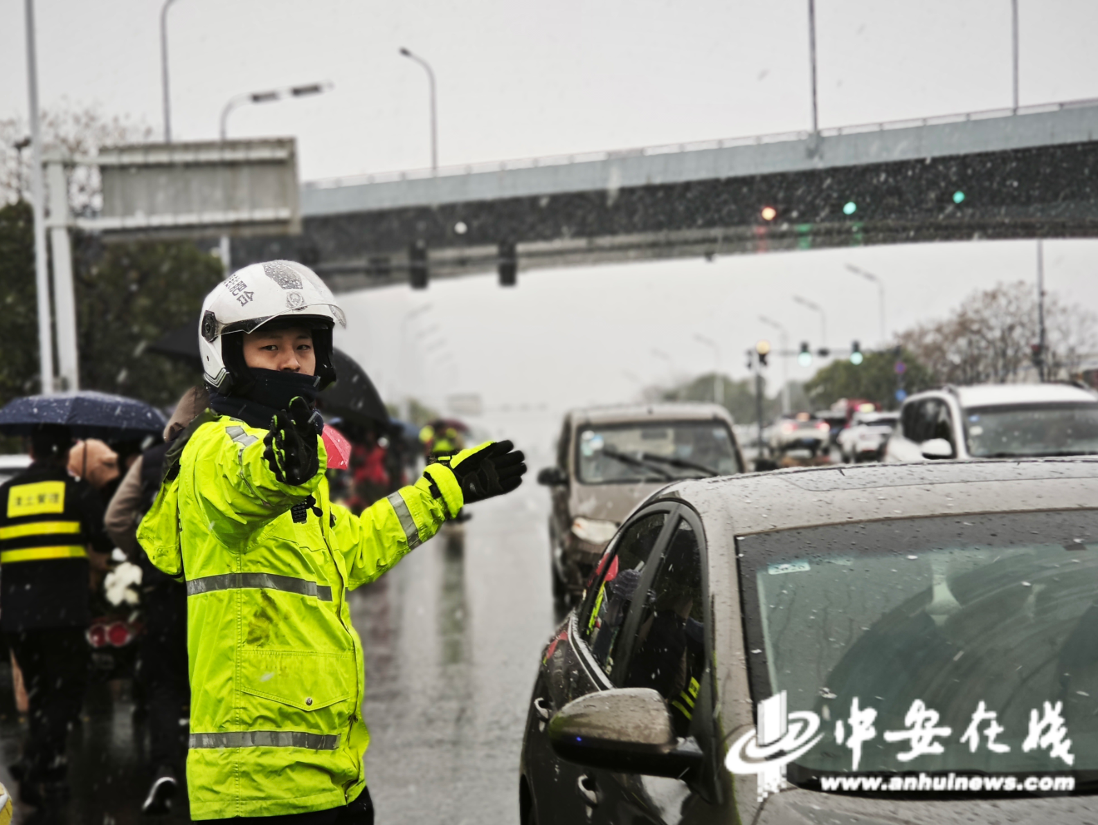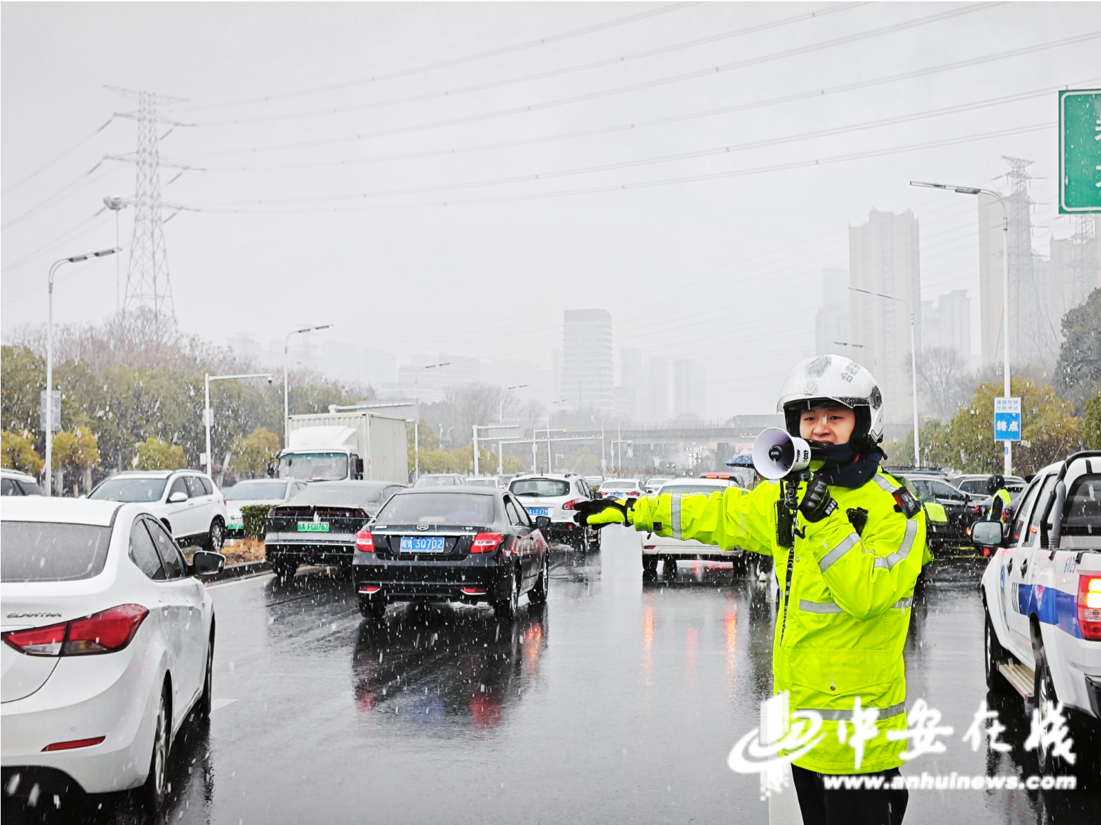 除夕佳节,瑞雪降临。合肥市公安局交管支队以雪为令、快速响应,全力保障全市道路交通安全畅通。针对降雪天气带来的路面湿滑等安全隐患,执勤警力第一时间在重点路段、易堵点位增设反光锥桶,调整隔离护栏,强化物理安全防护;在车流密集区域加大指挥疏导力度,引导车辆有序通行。(记者 张毅璞)