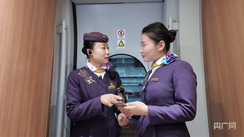 今年是中国铁路上海局集团有限公司合肥客运段高铁一队列车长徐捷值乘的第21个春运。作为“初代高姐”,她亲历了我国高铁从无到有、从普速列车到复兴号开行的发展历程。“00后”列车员王涂涂刚参加工作,正在经历职业生涯中的第一个春运。两人共同值乘G7694、G7692、G7602等高铁列车,在春运返程一线工作。