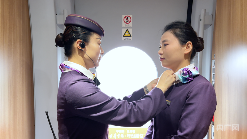 当日清晨7时,合肥客运段出勤室,天刚蒙蒙亮,徐捷早已完成测酒、签到、班前准备等全部流程,着装规范、精神饱满。王涂涂拖着乘务箱匆匆赶到,险些错过班前点名。徐捷轻声提醒:“春运期间各项工作都不能马虎,要提前到岗,把准备工作做在前头。”徐捷细心为她整理好领花。