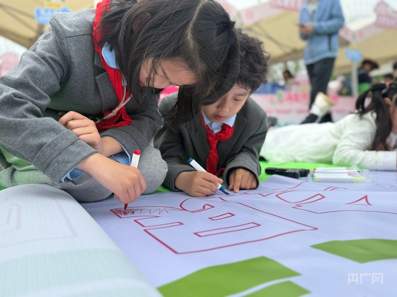 活动现场,孩子们手执画笔,共绘百米长卷(央广网记者 鲍玉婵摄)