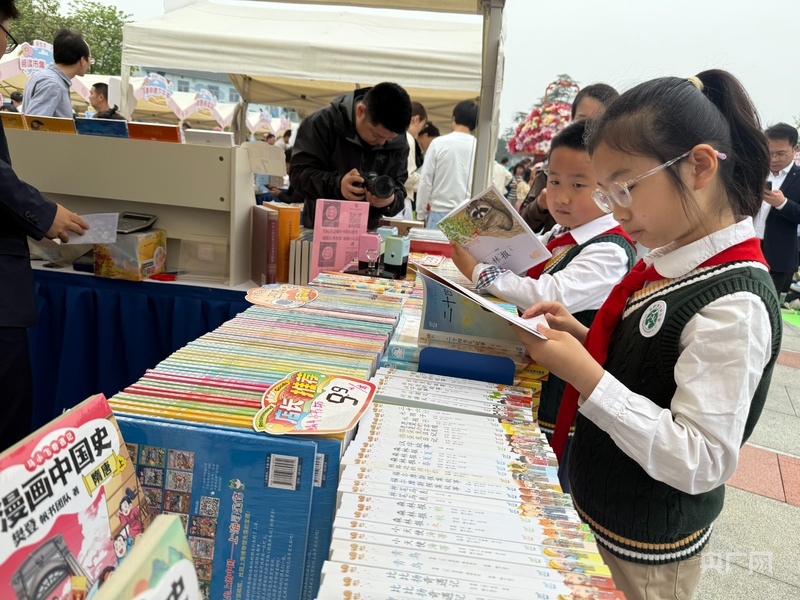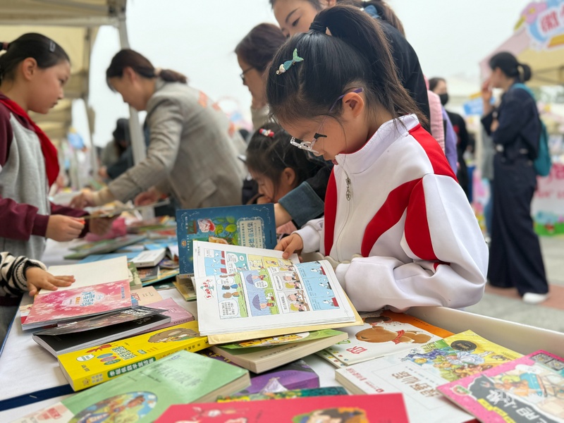 孩子们在集市上挑选自己喜爱的书籍(央广网记者 鲍玉婵摄)