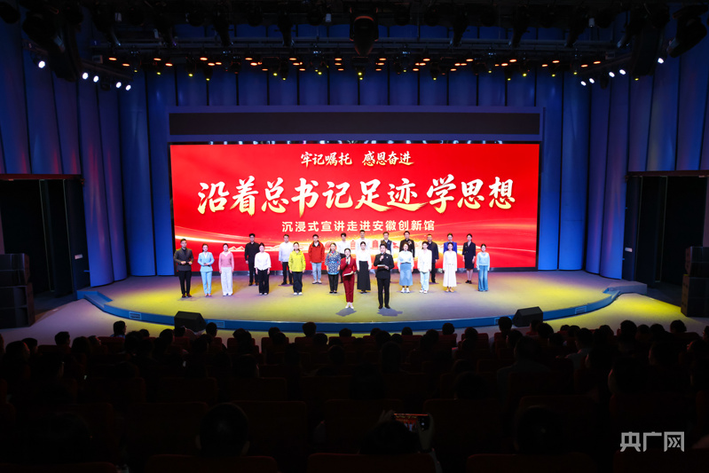 活动紧紧围绕习近平总书记2016年、2020年、2024年三次考察安徽重要讲话精神,从“创新·日新江淮展风采”“改革·勇立潮头闯新路”“振兴·和美乡村焕新颜”“融合·徽风皖韵谱华章”“奋进·皖美征程再启航”5个方面,通过音乐快板、情景剧、黄梅小戏、微讲述等形式,生动诠释了习近平新时代中国特色社会主义思想在江淮大地的火热实践,充分展现了全省上下牢记嘱托、感恩奋进的精神风貌和取得的显著成效。