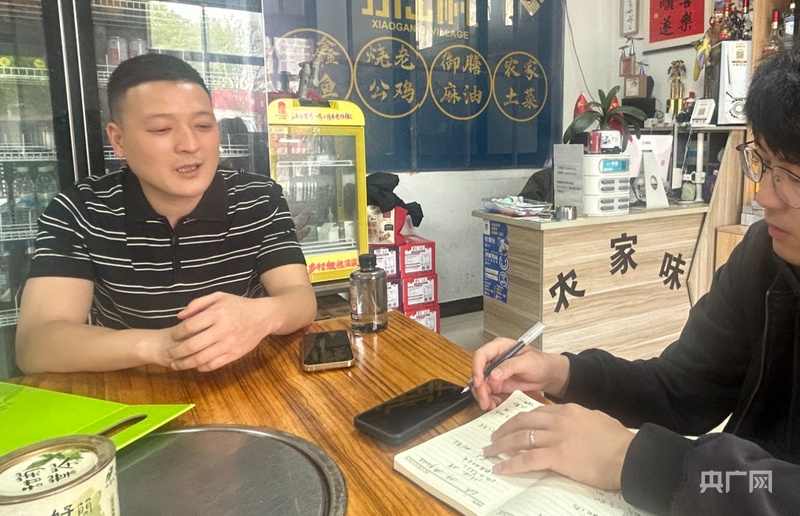 吴斌在自家的饭店里接受记者采访(央广网记者 徐秋韵 摄)