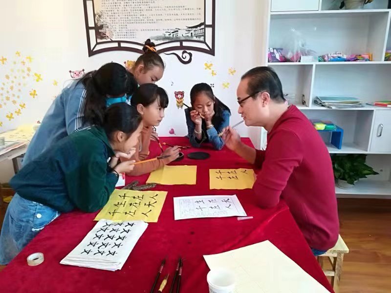 看到村小学专业师资不足,书法美术教学空缺,从小学一开学,工作队队长李玉忠就主动到学校沟通对接,承担起元圩小学书法美术教学任务,他每周一、三、五利用中午午休时间及周六下午,为孩子讲授2课时的书法美术,帮助这些乡村孩子提高美育水平。