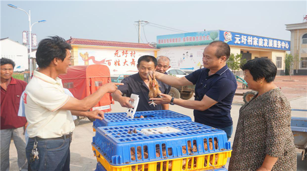扶贫工作队经过向集团公司申请,筹措30万元资金,向安徽皖西麻黄鸡禽业原种有限公司购买了3万只42天育雏鸡,向150户建档立卡的贫困户每户捐赠麻黄鸡苗200只。