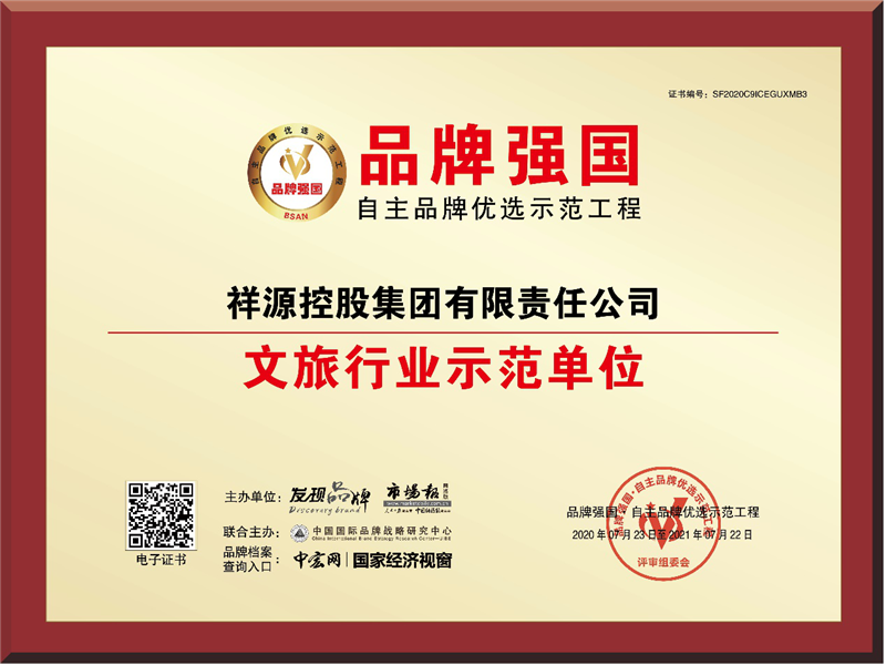 “2020中国品牌影响力100强”奖项的获取,是组委会对祥源多年来品牌战略布局及影响力聚焦升级的高度肯定。同期获得这一奖项的还有阿里巴巴、百度、华为、格力等企业。作为一家以文化旅游投资运营为主导的大型企业集团,祥源始终坚持旅游、文化产业与地产、建设等领域的多维度融合,通过产业集群效应和品牌矩阵效应,推进文化与旅游的深度融合。截至目前,已成功打造凤凰古城、黄龙洞、百龙天梯、齐云山、崂山、太姥山、丹霞山、祥源花世界、祥源象鼻窝等一批生态人文度假型和都市休闲体验型旅游目的地及其品牌。颇具特色的文旅消费升级与科技产品赋能,构建了祥源磅礴的产品集群合力和强大的品牌集群效应。