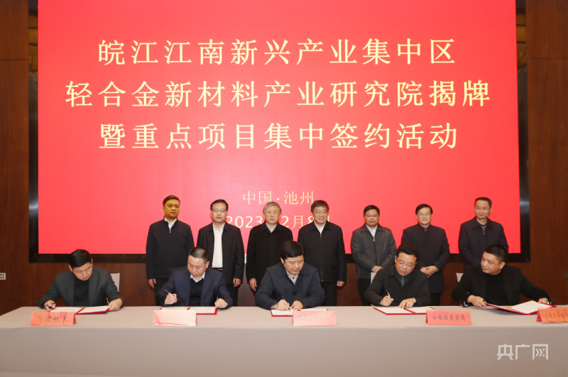 央广网池州2月13日消息(记者徐秋韵)近日,皖江江南新兴产业集中区轻合金新材料产业研究院揭牌暨重点项目集中签约活动在安徽池州举行。同时,首批4个产学研合作项目正式签约启动,4个重点产业项目从蓝图走向现实、正式签约落地。