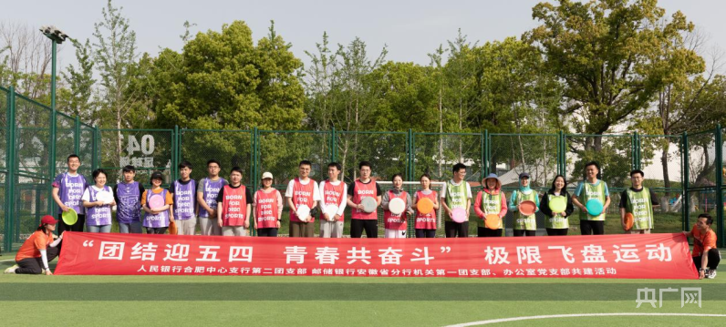 4月16日,邮储银行安徽省分行机关第一团支部联合机关办公室党支部、人民银行合肥中心支行第二团支部开展“团结迎五四青春共奋斗”极限飞盘支部共建活动。