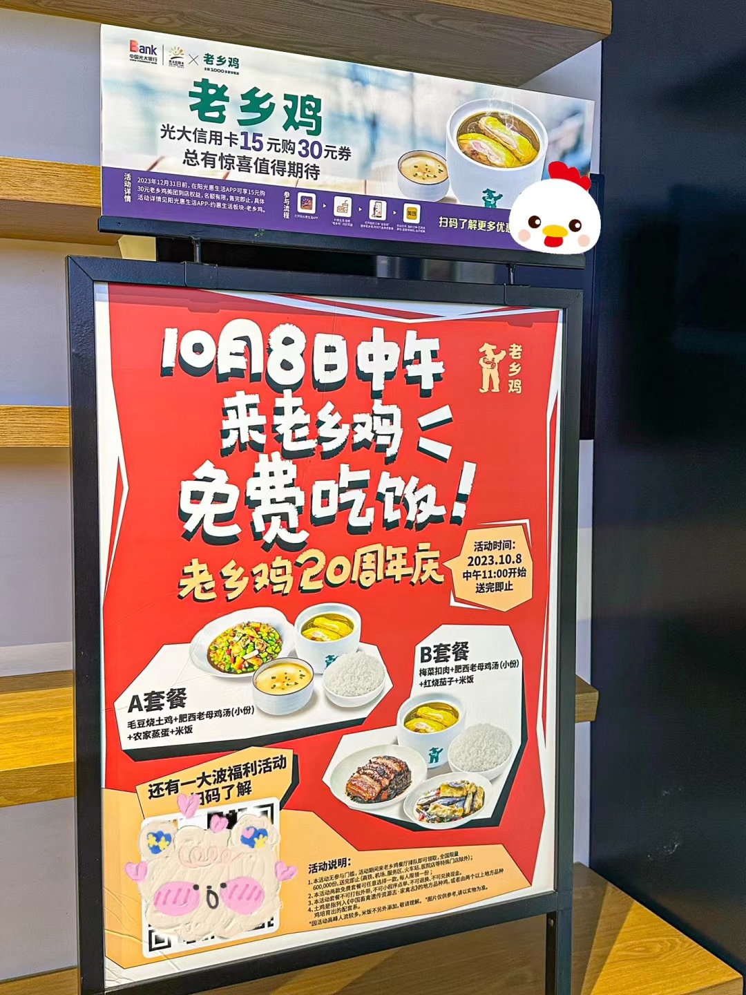 老乡鸡20周年庆!活动仅限2023年10月8日午饭,11点起入店参与: