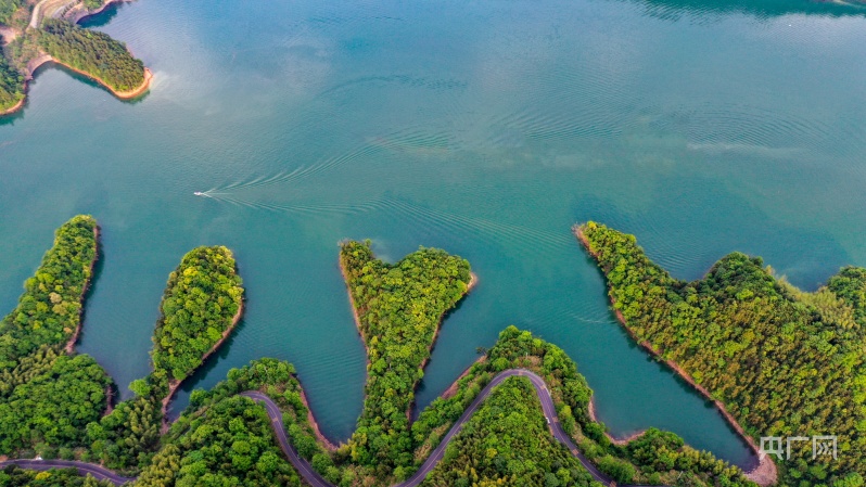 一水遥从天上来,青龙腾跃万山开。俯瞰青龙湾,酷似一条青龙腾空而起。它依托港口湾水库而建成,由38个独立岛屿组成,湖面面积达32.8平方公里。