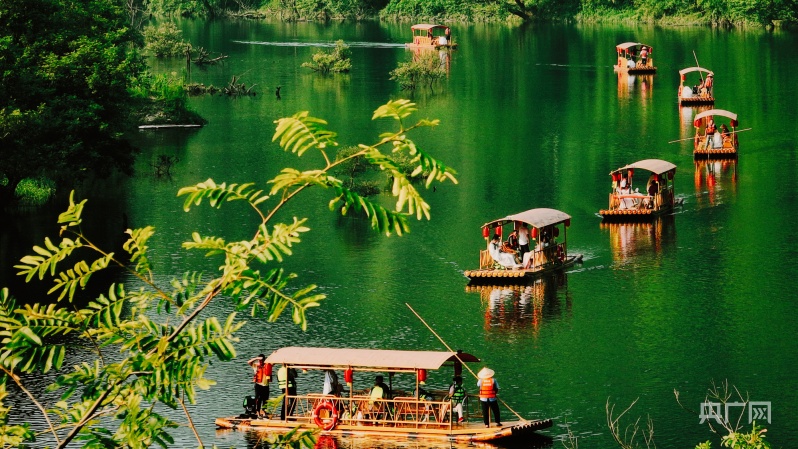 夏季是游船的好季节。在西津野渡乘坐竹筏徜徉在河道上,凉爽的风迎面扑来,两岸青山环绕,万亩竹海依山拔节,西津河清洌可鉴,野鸭四处游荡,白鹭水面争鸣,堪比游览桂林漓江山水。但若想要对青龙湖有更加”全景式“的理解,可以来青龙湾通用机场,感受一下无人机视角。