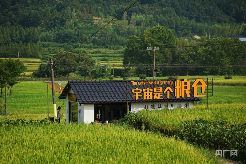 位于一片稻田中的“宇宙是个粮仓”(央广网记者 赵家慧摄)