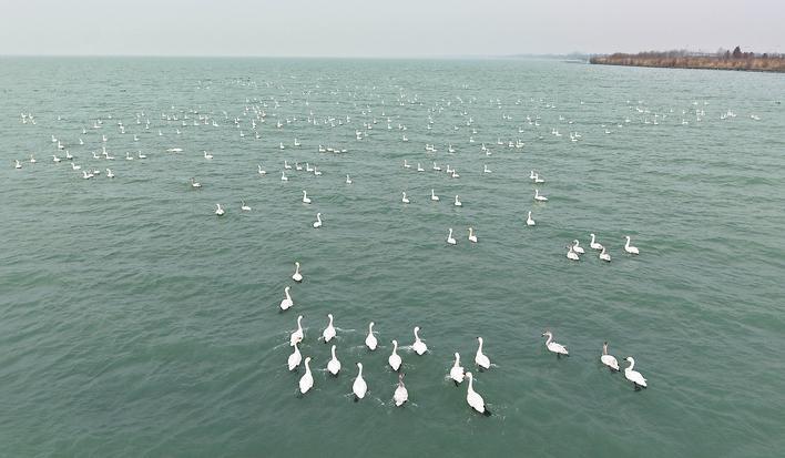 1月29日,成群天鹅和大雁在巢湖湖面上结伴游弋。当日,巢湖市柘皋河湿地附近的巢湖水域迎来了一群特殊的“冬日访客”——近千只天鹅与大雁(其中也混杂部分斑嘴鸭)。它们亲善相伴、自在嬉戏,在风浪中舒展身姿,清脆鸣叫声交织成自然的乐章,成为冬日湖面上一道生机盎然的风景。(马丰成 摄)