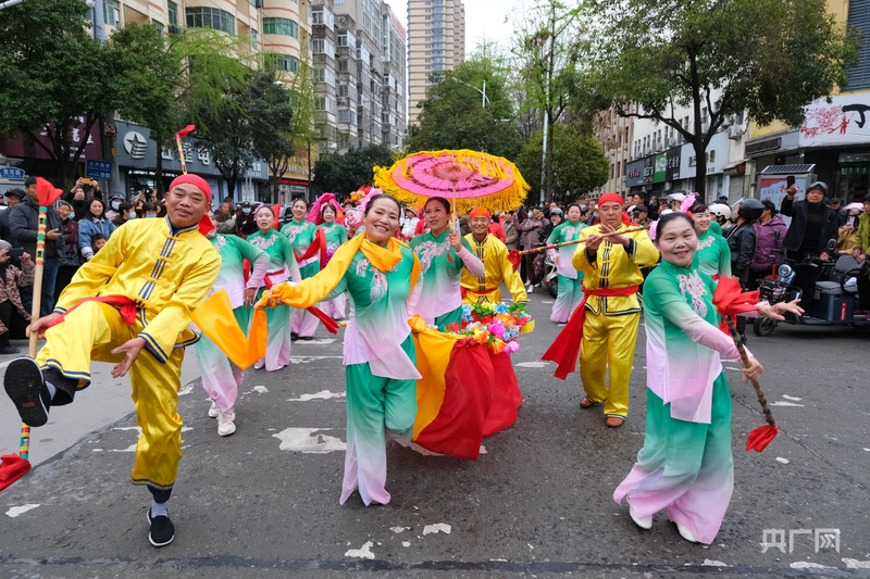 央广网蚌埠2月2日消息(记者 刘浩 通讯员 李向前)近日,在广德市举行的“非遗贺新春”大巡游活动中,五河县省级非遗项目“钱杆舞”精彩亮相。队员们手持镶嵌铜钱的山竹钱杆翩然起舞,红绸翻飞,铜钱作响,为现场观众献上了一场独具淮河风情的文化展演。