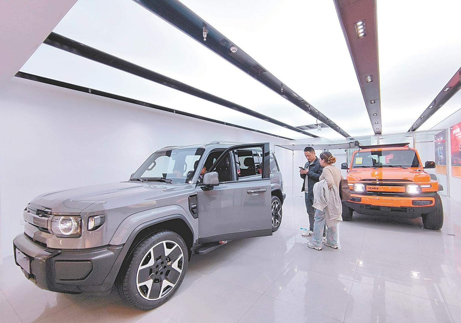 2月14日,市民在六安市一家新能源汽车展厅了解、选购新能源汽车。通讯员田凯平摄