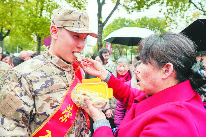 为即将远行的孩子送祝福,亲人把寄托着美好期许的饺子喂给孩子吃。