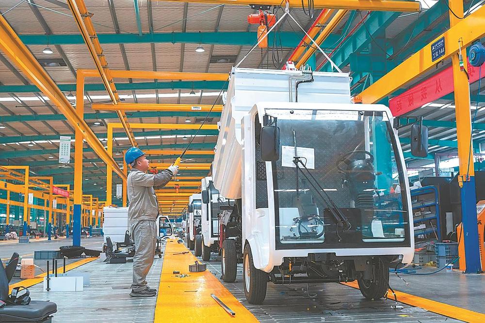 3月17日,芜湖市繁昌经济开发区安徽爱瑞特新能源专用汽车股份有限公司生产车间内,工人们在赶制新能源电动清扫车,满足市场需求。通讯员肖本祥摄