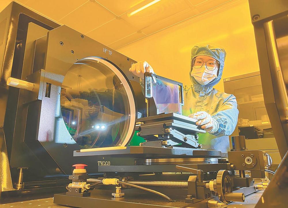 3月13日,位于肥东县长临河科创小镇的安徽中科光栅科技有限公司里,员工对衍射光栅产品进行测试。近年来,肥东县持续强化技术创新与成果转化,为新质生产力发展注入强劲动能。通讯员 许庆勇 摄