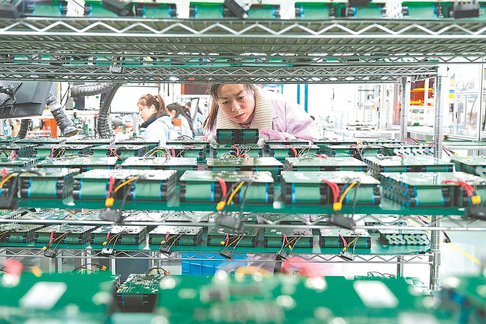 3月17日,五河县一家锂电池生产企业,工人在查看电池产品。近年来,五河县扎实推进新型能源体系建设,推进全县锂电企业的数字化与智能化改造进程。通讯员李向前摄