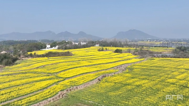 央广网合肥3月24日消息(记者 张琳琳 通讯员 庐宣)春分时节,庐江县乐桥镇岱鳌山脚下渐次染黄,放眼望去,2万余亩油菜花正迎春盛放,金色的花浪从山脚铺展到天边,与远处的青山、近处的村落交织成一幅田园画卷。