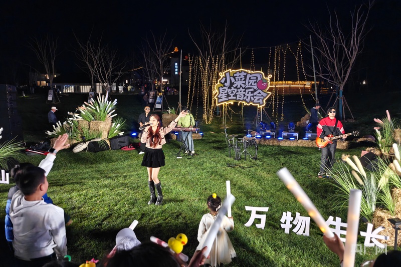 除音乐演出外,现场同步开启千灯烟花秀、草坪游园会、露天电影、萌宠互动、趣味采摘、蔬菜盆栽DIY等丰富活动,游客在聆听音乐之余,可观赏璀璨烟花,体验田园采摘的质朴乐趣,一站式解锁“听、赏、玩、采、做”的全链条田园休闲体验。据了解,小菜园星空音乐会全年计划举办30场,原则上固定每周六举办,雨天顺延,将成为庐江常态化文旅品牌活动。