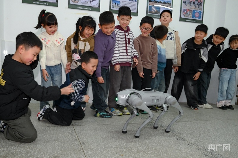 2026年4月3日,安徽省马鞍山市和县青少年活动中心,孩子们正在与机器狗进行互动。(央广网发 秦祖泉 摄)