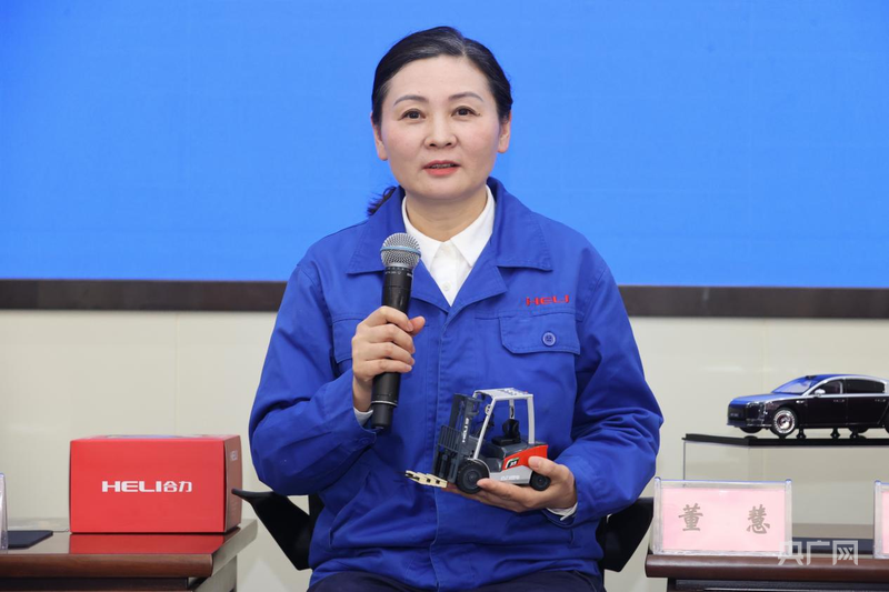 董慧现场展示叉车模型(央广网发 刘炜鑫摄)