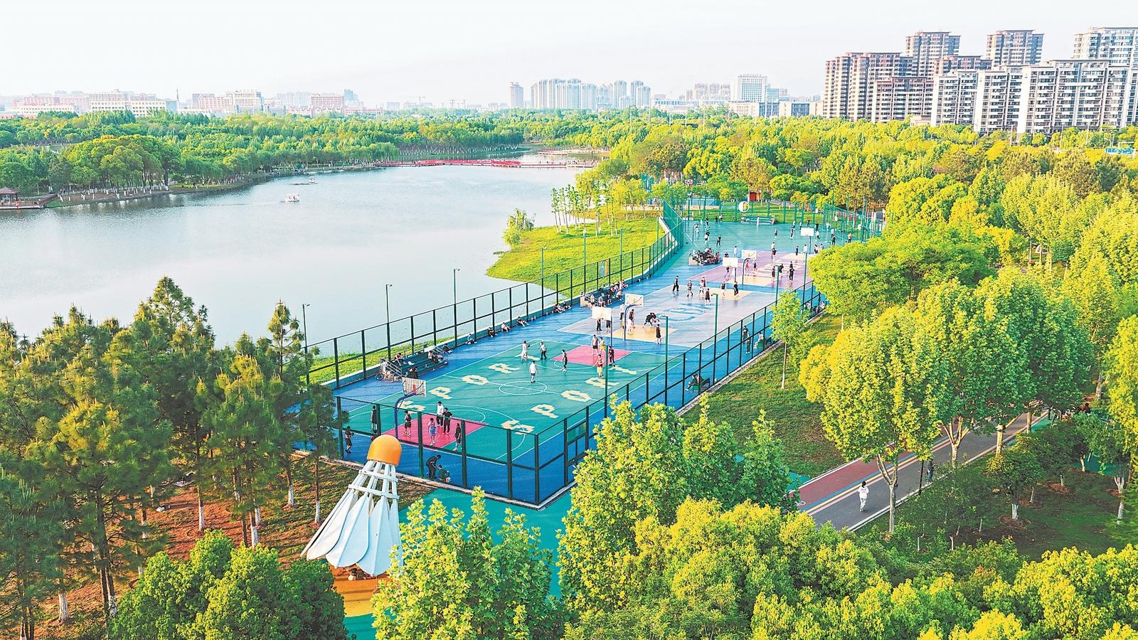 4月19日,合肥新站高新区学林体育公园,市民在锻炼身体。近年来,合肥新站高新区在便民体育场地设施建设上持续发力,进一步推进“家门口”便民体育场地设施建设,在公园内新建一批贴近居民区、方便可达、面向群众的全民健身场地设施,满足市民日益增长的体育锻炼需求。通讯员 张敏 摄