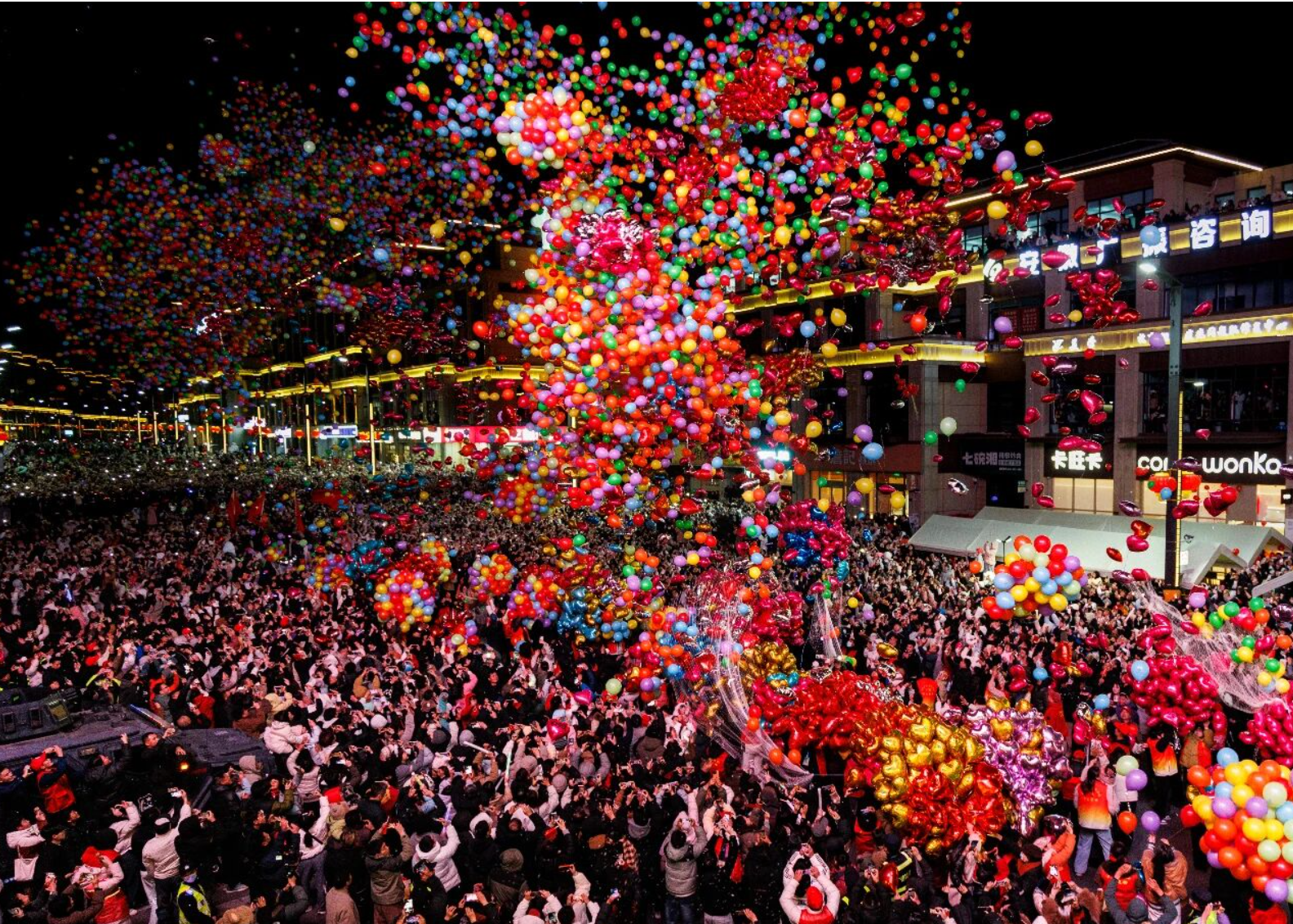 “广德三件套”让小城走红,图为市民游客迎接新年。张睿骐 摄