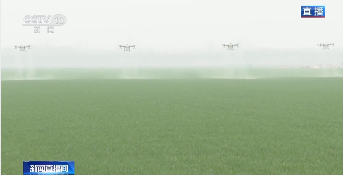不远的地方还有一片晚播麦田,自走式植保机也在开展作业。相较于无人机,自走式植保机的作业效率更高,单次喷洒覆盖范围更广。但为什么在眼下小麦拔节期,没有让它全面替代无人机呢?这是因为在拔节期使用自走式植保机,可能会压伤小麦,造成减产,所以只能用在晚播小麦田里。这也是农场根据不同苗情、不同作物生长阶段,精准匹配农机装备的精细化操作。让每一台装备因地制宜,发挥最大价值。