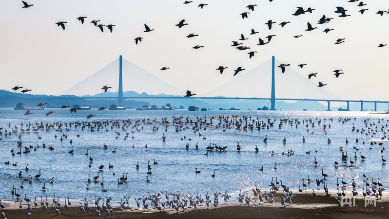 《望东大桥下的候鸟乐园》(央广网发 丁俊武 摄)